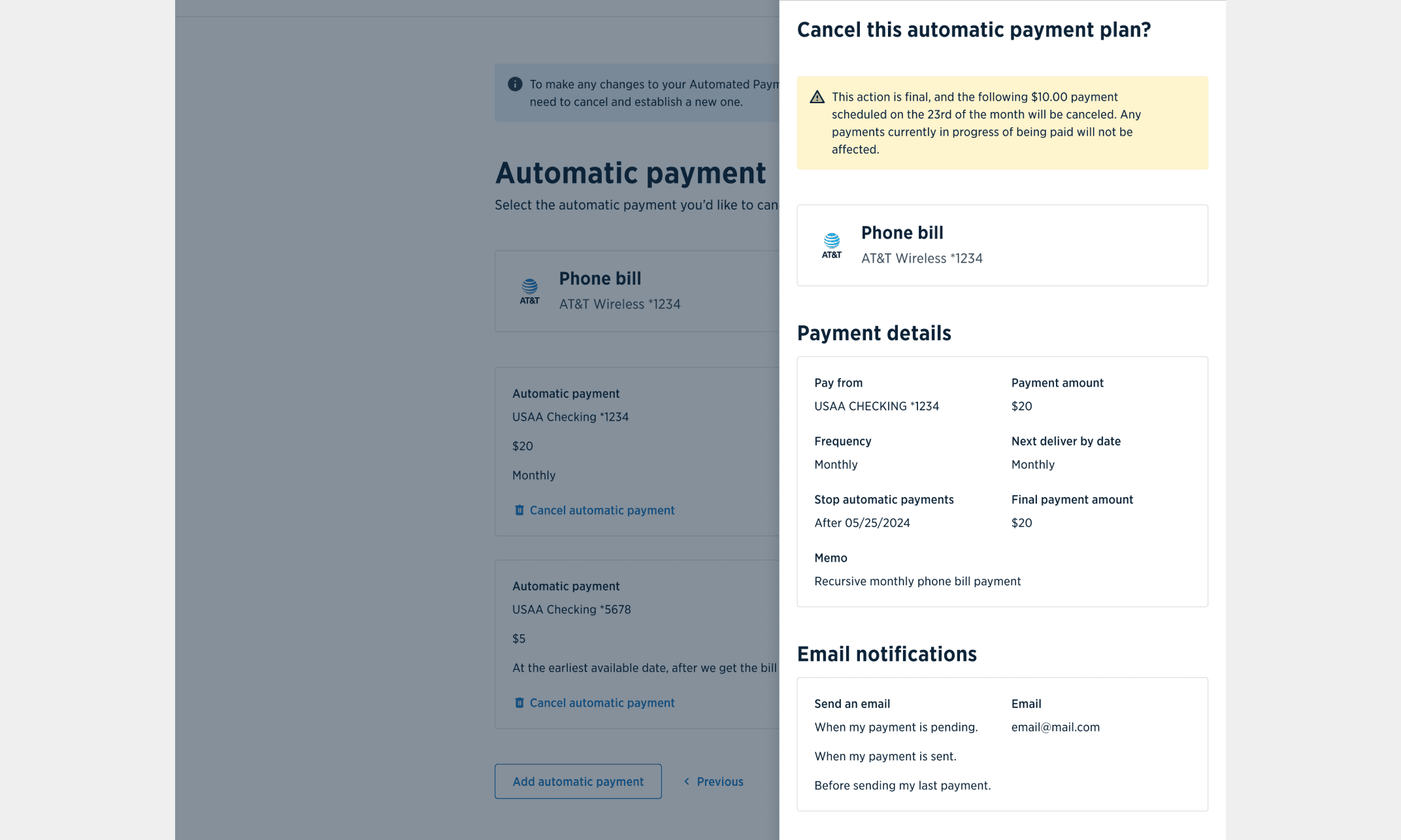 Automatic Payment Plans (APP) allow Members to set up, manage, and cancel recurring payments for both internal and external bills. Tens of thousands of members use APP each month, with around 500K USAA credit card accounts on autopay.