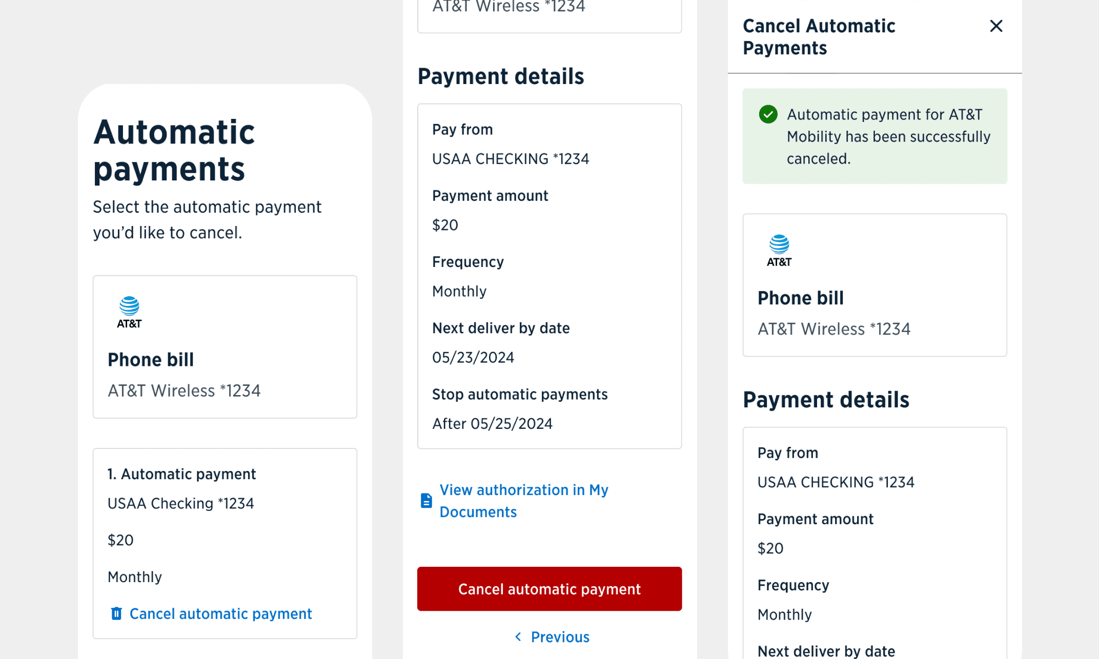 We designed both short-term and long-term solutions for the APP launch point. In the short-term, we added setup and manage APP buttons on one-time payment as the Native launch point to Mobile Web. For the long-term, we designed a consolidated biller summary where members could manage their APPs in one place. We not only modernized the APP experience but also improved usability, making it easier for members to set up or cancel payments while aligning with MSAT feedback and best-practices gathered from competitive analysis for a more intuitive and streamlined experience.